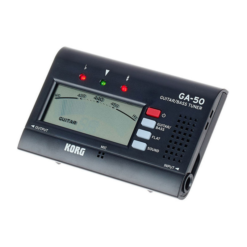 KORG GA-50 est plus lisible grâce à l'affichage de la note en plus grand. Il convient pour les guitares jusqu'à 7 cordes et jusqu'à 6 cordes pour les basses.