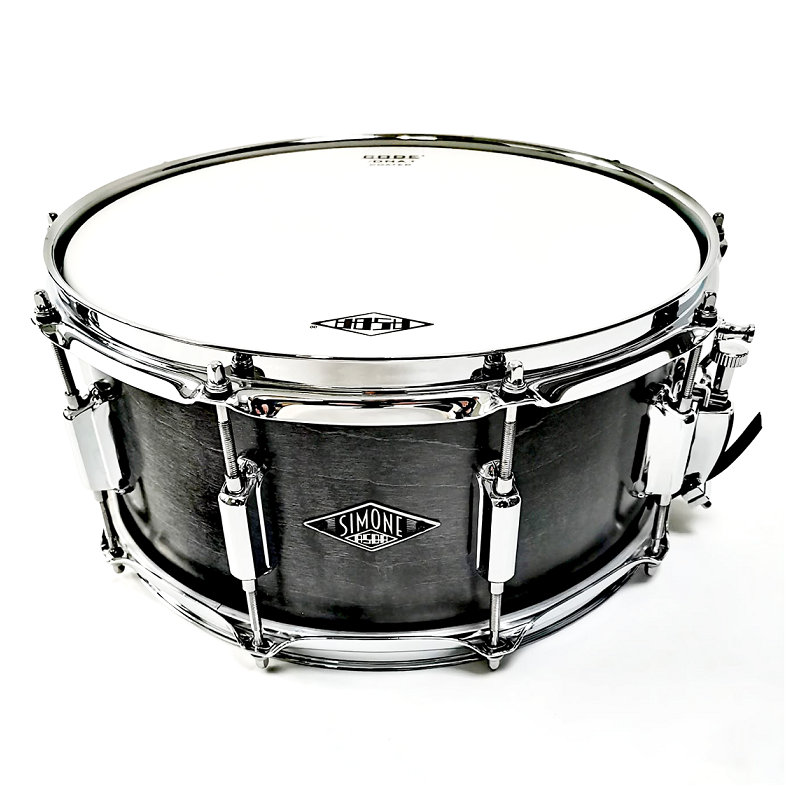 En créant la caisse claire SIMONE, nous voulons rendre hommage à Simone Boudard, le "S" de ASBA. Son fût, fabriqué en 6 plis horizontaux d'érable américain de premier choix, propose une musicalité exceptionnelle.