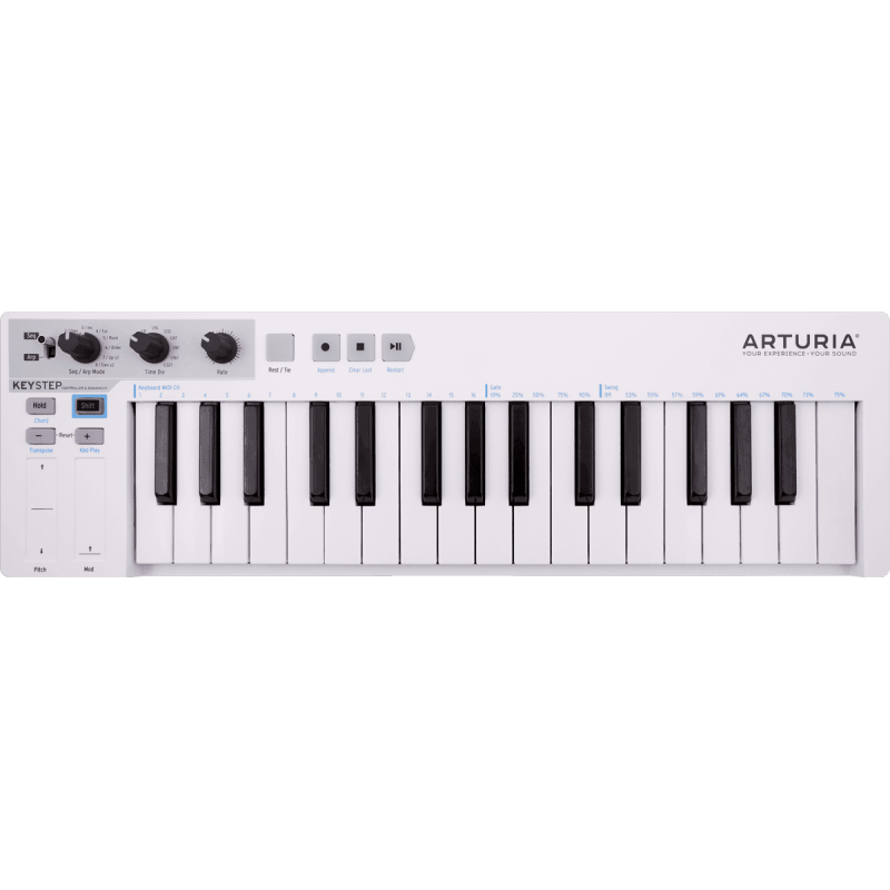 Le KeyStep est un instrument portatif combinant les fonctionnalités dun clavier contrôleur avec, en plus, un séquenceur pas à pas polyphonique et de quoi contrôler des appareils analogiques et numériques.
