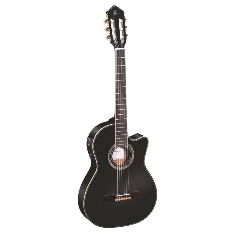 RCE145, modèle Slim Neck à caisse fine, pan coupé, EQ Ortega MagusPro (accordeur intégré), table épicéa canadien massif, fond & éclisses acajou, manche acajou (sillet 48 mm), touche (plate) & chevalet sonokeling, chevalet 12 trous, truss rod double action, cordes D'Addario, avec housse rembourrée.