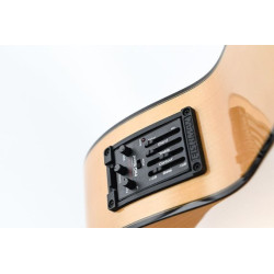 Pour ce modèle haut de gamme de la série NAC, la marque espagnole a choisi de miser sur la qualité: les bois ont été soigneusement sélectionnés et les essences sont précieuses comme lébène. La qualité esthétique et la qualité technique saccompagnent dun très grand confort de jeu notamment grâce à la demi-caisse de linstrument qui le rend plus maniable. Le truss rod intégré au manche permet un réglage précis pour compenser les tensions, et le système damplification Fishman Pro Blend quant à lui allie des performances professionnelles à une simplicité dutilisation avec deux micros sélectionnables progressivement grâce à la technologie de la série Blend de la marque Fishman. Particulièrement destinée à tous ceux qui souhaitent un instrument de grande qualité et très soigné, cette guitare NAC4 comblera les musiciens les plus exigeants.