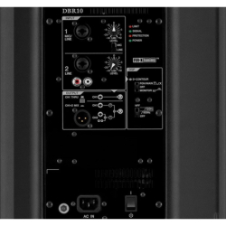 Vous trouverez à larrière de cette enceinte une console de mixage 2 canaux qui vous propose des fonctions dignes d'une enceinte haut de gamme : un préampli micro, une entrée stéréo et une prise Thru pour chaîner plusieurs enceintes. La DBR10 dispose, par ailleurs, de connexions jack et XLR. Notez qu'elle peut être montée sur un pied d'enceinte ou être accrochée au plafond à l'aide de supports de suspension.