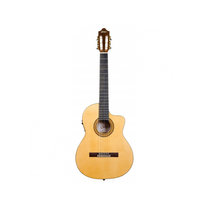Ce beau modèle électro-acoustique destiné aux amateurs de flamenco présente un grand confort de jeu, notamment grâce à son pan coupé qui permet datteindre les frettes les plus hautes. Les réglages sont faciles, quil sagisse des tensions exercées sur le manche que permet de compenser le truss rod, ou bien des graves et des aigus facilement gérés par le système électronique Fishman Prefix Problend qui allie simplicité et performance. Comme tous les autres modèles de la marque, la CUT500S est fabriquée à partir de bois de qualité et a été confectionnée avec soin par des luthiers expérimentés. Ce beau modèle est parfait pour les amoureux du flamenco mais conviendra au plus grand nombre.