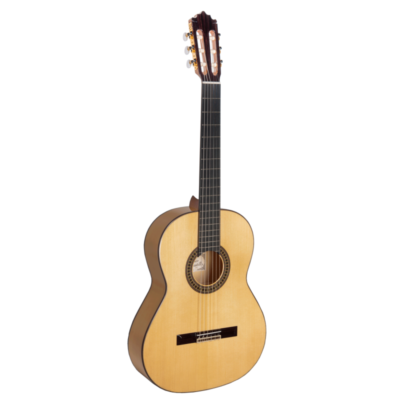 Une guitare flamenco avec de la race et de la puissance, avec des frettes hautes pour faciliter la pulsation et la vitesse.