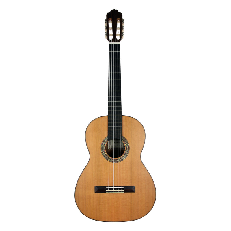 4ST, table cèdre massif, fond & éclisses acajou, manche acajou, touche palissandre, sillet de tête 52 mm, cordes Savarez Corum.