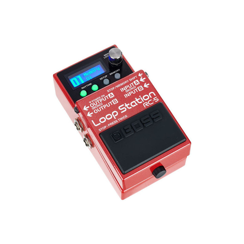 Adoptez la RC-5 et dotez votre Pedalboard d'un maximum de possibilités de création de boucles. Enregistrez des sons en qualité premium 32 bits, naviguez dans les paramètres et repérez le statut de la boucle en cours à l'aide de l'écran rétroéclairé, et bénéficiez de commandes étendues grâce au connecteur jack MIDI In et Out. Avec plus de 50 rythmes, 13 heures d'enregistrement en stéréo et 99 mémoires de phrases, le RC-5, bien que compact, met sous vos pieds un puissant arsenal musical.