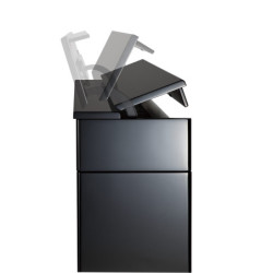 Le DP603 de Roland se place à part des modèles concurrents du marché. Fin et élégant, son meuble linéaire minimise les courbes et décorations. En s'ouvrant, le couvercle de clavier se transforme en pupitre élégant, et se referme discrètement et lentement pour éviter tout dommage. Malgré sa profondeur réduite (35 cm), le DP603 possède la robustesse qui fait la renommée de la gamme DP depuis 2003.