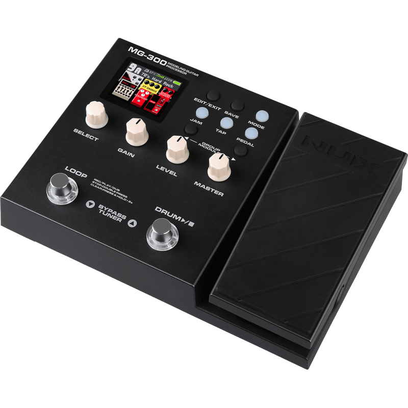 Conçu dans un format compact, ce multi-effets révolutionnaire vous permettra de contrôler et de profiter de tous vos presets grâce à ses 2 footswitchs, son ergonomie, son écran couleur clair et lisible et sa navigation simple. Une pédale dexpression intégrée peut contrôler différents paramètres, et un accordeur intégré vous permet dêtre toujours bien accordé rapidement. Avec le logiciel Quick Tone vous pourrez facilement modifier les paramètres de votre son avec précision, télécharger des patchs, charger des IR tiers et même configurer le routage du flux audio USB. Quick Tone est un logiciel d'édition interactif, lorsque vous modifiez les boutons, vous verrez vos changements en temps réel. Véritable interface son USB, le MG-300 vous permet aussi de vous enregistrer, de streamer et même de pouvoir re-amper vos enregistrements. Enfin, le mode Jam intègre une boîte à rythmes ainsi quun looper pour vous permettre de vous exercer, jouer et créer vos boucles sur plus de 50 rythmes différents avec une synchronisation de vos boucles sur le rythme. Si vous cherchez le multi-effets compact le plus avancé et complet du moment, et avec un prix terriblement abordable pour les possibilités et la qualité des sons fournis, alors nhésitez plus et obtenez le Nux MG-300 !