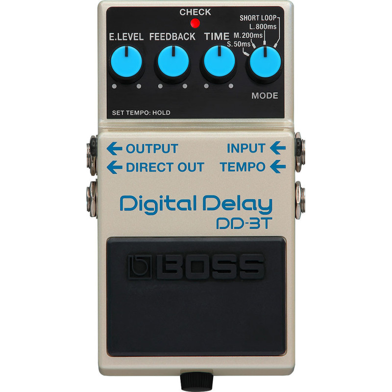 La Boss DD-3T Digital Delay est la grande-soeur de la DD-3 emblématique, utilisée et aimée par de très nombreux musiciens. Cette pédale fait preuve dune réponse exceptionnelle, intuitive et renommée avec une bonne dose de fonctionnalités. Le "T" ajouté dans cette version de la DD-3 correspond au "Tap Tempo", ce qui signifie que les delays numériques proposés par la pédale peuvent manuellement être synchronisés avec le rythme de la musique. Le tap tempo peut être activé en maintenant la pédale enfoncée pendant deux secondes ou en branchant une pédale externe (non incluse). En mode tap tempo, vous obtenez jusquà 800 ms de temps de retard et vous pouvez utiliser le bouton mode pour définir les subdivisions du tap (triplet de noire, croche ou noire). Avec cette nouvelle fonctionnalité, la BOSS DD-3T trouvera forcément sa place sur votre pedalboard et pourrait même remplacer votre DD-3 standard !