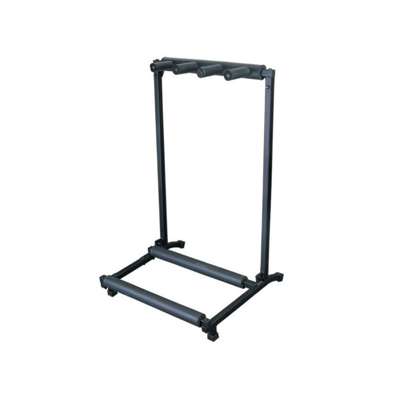 Les guitaristes enthousiastes ont souvent tendance à collectionner des guitares diverses et ont alors besoin de les garder sûrement et pratiquement, à la maison aussi bien que sur scène. Le RTX X3GN est un stand pliable pour 3 guitares. Ce stand en noir satiné est la solution fiable qui met fin à tous ces stands pour guitares indépendants. Vos guitares, guitares basses ou dautres instruments à cordes pareils reposent sûrement contre la mousse caoutchouc dont le stand est revêtu. De plus, ce stand léger est pliable, donc il est très facile à transporter !