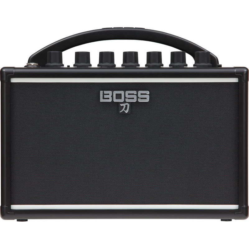 Grâce à lergonomie et aux performances du KATANA-Mini, vous pouvez obtenir des sons de guitare de qualité à tout moment et en tout lieu. Il pèse moins de 1,4 kg et se place facilement sur une table ou une étagère. Et grâce au fonctionnement sur piles et à la poignée de transport, il est facile à emporter pour jouer n'importe où, en intérieur ou extérieur. Grâce à lentrée Aux, vous pouvez même y brancher votre smartphone et jouer sur les titres de votre bibliothèque sonore, quils proviennent de votre carte mémoire ou dun service de streaming. Et pour le travail à la maison ou les séances denregistrement, vous serez ravi de profiter de la sortie casque/enregistrement, qui simule le son du caisson de lampli et vous permet de jouer avec un son réaliste.