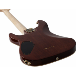 Modèle populaire et abordable de Schecter, la Omen Extreme-6 a largement fait ses preuves au fil des années. Avec ces nouvelles variantes de couleurs, le modèle reste intéressant pour tous les guitaristes de métal. Ce qui rend cette guitare si spéciale, c'est sa table en érable arquée posée sur un corps en acajou, une caractéristique que lon ne retrouve pas souvent dans cette gamme de prix. La finition est également excellente ; les frettes sont soigneusement polies afin qu'il n'y ait pas d'extrémités gênantes. Le binding couleur crème autour du corps et de la tête de manche est également un joli détail qui donne à la guitare un look beaucoup plus soigné. Parce que la Omen Extreme-6 est équipée d'un chevalet tune-o-matic avec cordes traversantes, l'instrument fait preuve dun sustain particulièrement bon ! En partie en raison de sa conception "string-through" , les parties rythmiques sonnent considérablement plus serrées.